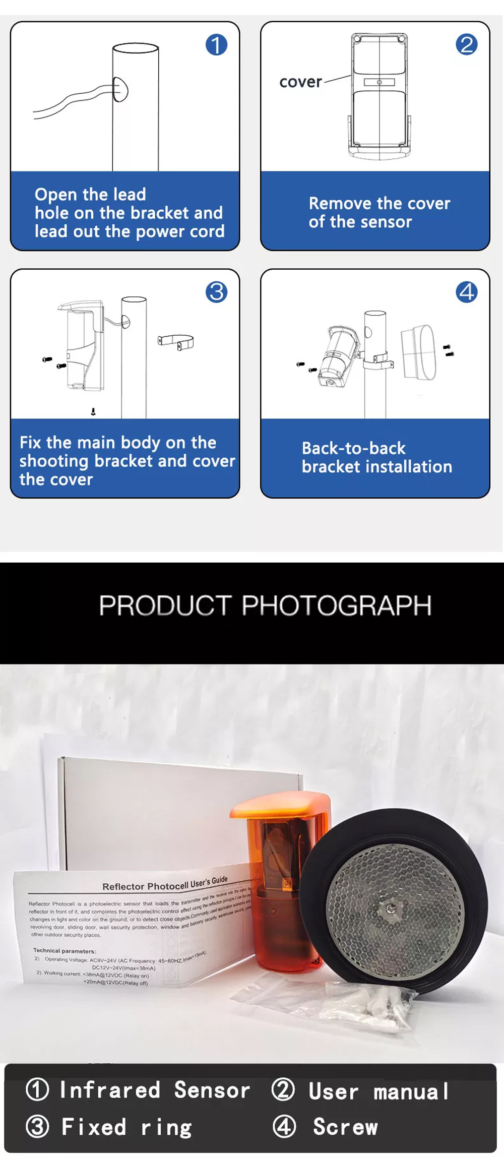 1). Operating Voltage: AC9V~24V (AC Frequency: 45~60HZ,Imax=15mA); DC12V~24V(Imax=38mA)