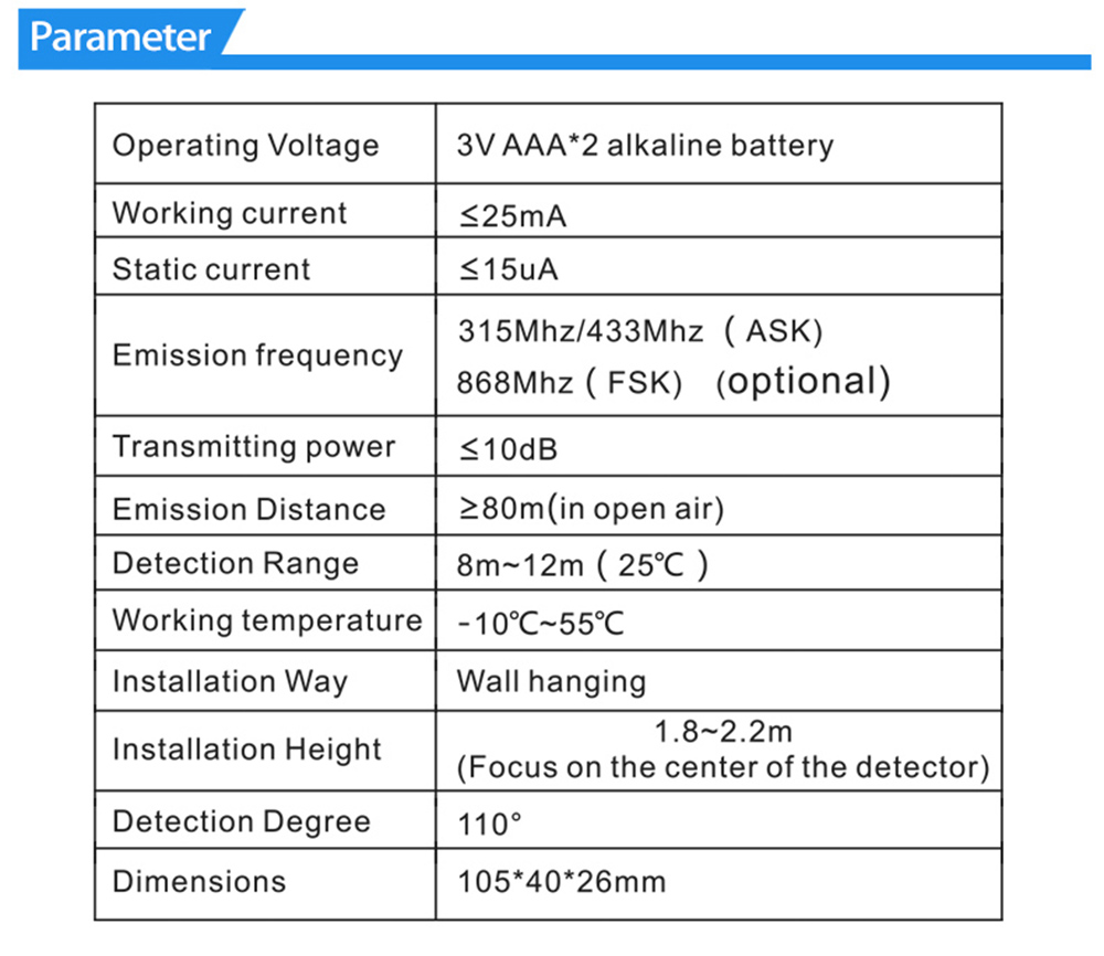 SF-82R 433mhz Wireless PIR Motion Sensor for Burglar Alarm System Usage